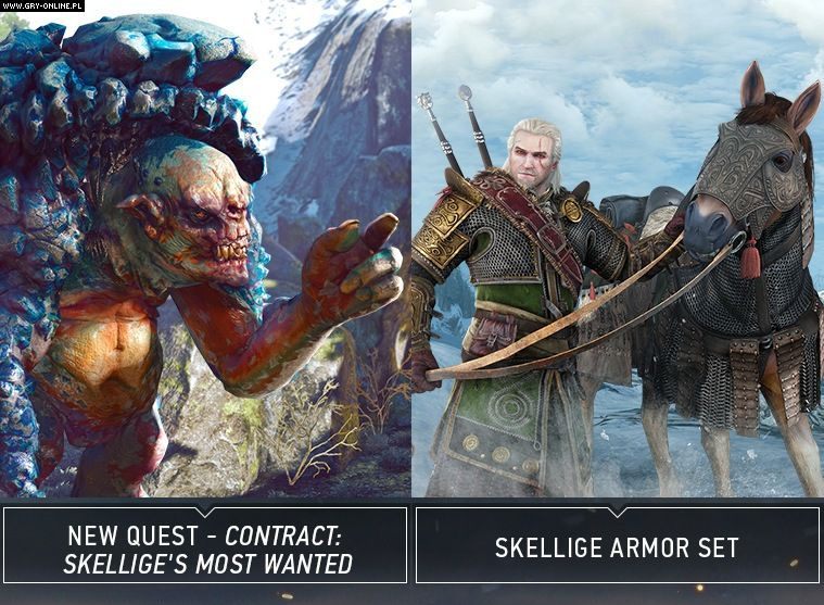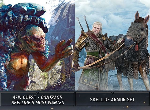 Studio CD Projekt RED ujawniło dwa darmowe DLC do gry Wiedźmin 3: Dziki Gon zaplanowane na ten tydzień. Tym razem tematycznie skupiają się one wokół archipelagu Skellige. To tam znajdziemy nowe zlecenie, zatytułowane Najgroźniejszy potwór na Skellige. Dodatkowo Geralt (i jego klacz) będzie mógł wyposażyć się w wyspiarską zbroję. Poza tym, CD Projekt RED obiecało nadrobić zaległości oddając graczom brakujące DLC z zeszłego tygodnia – nie wszystkie platformy sprzętowe otrzymały w swoim czasie zapowiadane zadanie typu poszukiwanie skarbów: Rynsztunek szkoły Wilka oraz alternatywny strój dla Triss. Wszystkie ujawnione do tej pory zestawy będzie się dało pobrać z odpowiedniej usługi sieciowej.