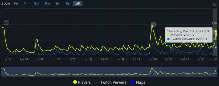 Nie aż tak dobrze, ale biorąc pod uwagę, że na tapet brana jest niemal siedmioletnia produkcja, wydaje się, iż nie jest źle. 23 grudnia 2021 roku odnotowano ponad 78,5 tys. osób jednocześnie grających w trzeciego Wiedźmina na Steamie; przed premierą drugiego sezonu serialu Netflixa zwykle było to 30-40 tys. Znacznie mniejszą „górkę” można zauważyć w przypadku pierwszej części serii (ok. 6,5 tys. względem 1-2 tys.), a najmniejszą zarejestrowano przy Zabójcach Królów – ponad 4 tys. w stosunku do przedświątecznego wyniku 1–1,5 tys.