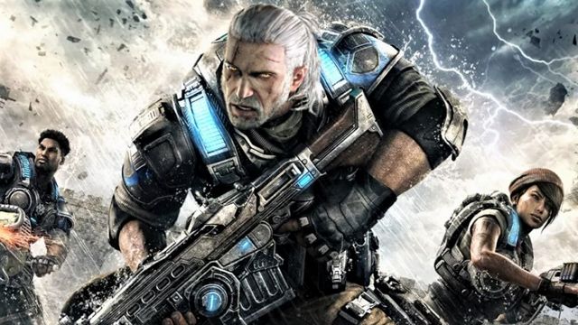 Więc Geralt nosi zbroję z Gears of War podczas strzelania z pistoletu w stylu Nerf. Marketing 10/10.