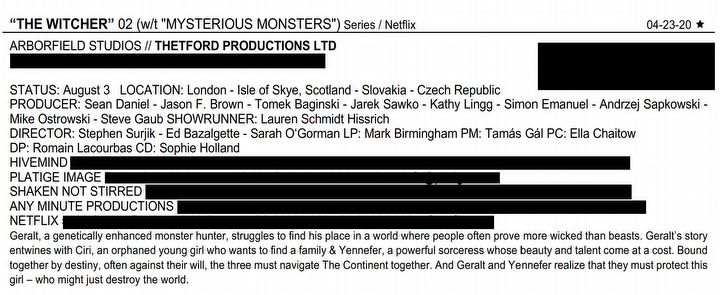 Źródło: Production Weekly (via Redanian Intelligence). Dane kontaktowe zaciemnione ze względu na ochronę prywatności.