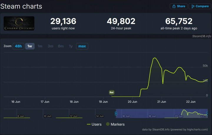 Południowokoreańskie studio nie obwarowało uczestników zamkniętej bety żadnymi obostrzeniami, dlatego w sieci nie brakuje zapisów rozgrywki dokumentujących liczne bolączki tytułu. Kiepski początek wpłynął na zainteresowanie Chrono Odyssey – w dniu rozpoczęcia testów w szczytowym momencie w tym samym czasie produkcja zaprosiła przed ekrany przeszło 65 tysięcy użytkowników Steama (via SteamDB). Obecnie liczba ta spadła o połowę, do wartości ok. 30 tysięcy jednoczesnych graczy. Tymczasem dostęp do zamkniętej wersji beta kończy się dzisiaj.