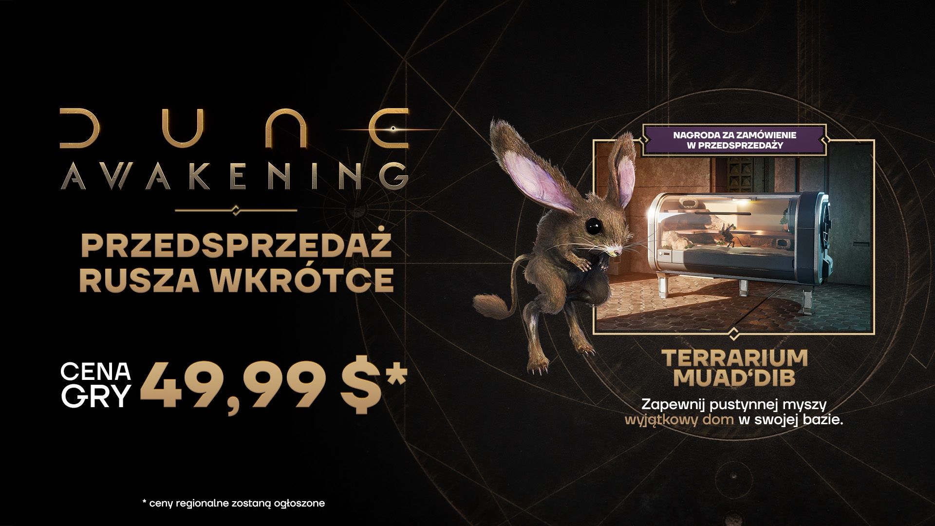 Zamawiając Dune: Awakening w przedsprzedaży, gracze otrzymają unikalny element dekoracyjny do swojej bazy – Terrarium Muad’Diba, w którym zamieszka urocza pustynna mysz.