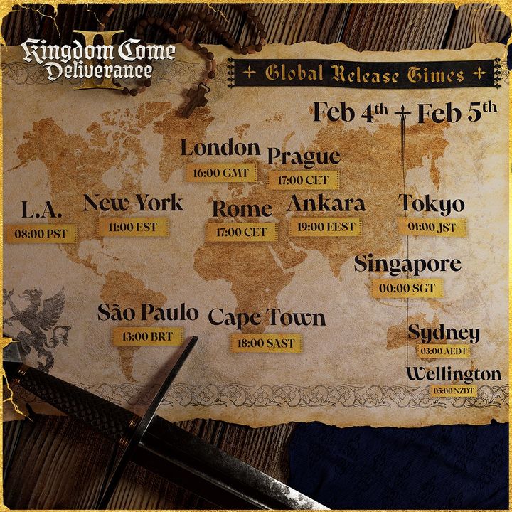 Poza tym twórcy ujawnili mapę z konkretną godziną premiery produkcji. Przypomnijmy, że tytuł zadebiutuje na rynku 4 lutego 2025 roku z polską lokalizacją w formie napisów. W Polsce gra stanie się dostępna o godzinie 17:00.