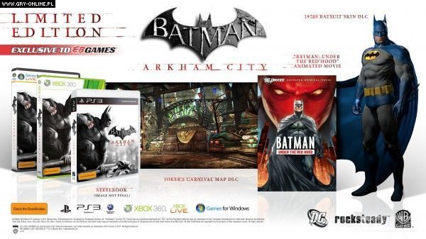 Nowozelandzki i australijski oddział sklepu EB Games wprowadził do sprzedaży kolejną limitowaną edycję gry Batman: Arkham City (99 dolarów australijskich na konsole i 89 dolarów australijskich na PC). W skład Limited Steelbook Edition wejdzie film animowany Batman Under the Red Hood na Blu-ray lub DVD oraz dwa dodatki DLC (strój Batmana z lat 70., a także wyzwania na mapie Joker Carnival). Całość zostanie zamknięta w stylowym, metalowym pudełku. Gra zadebiutuje w drugiej połowie października.