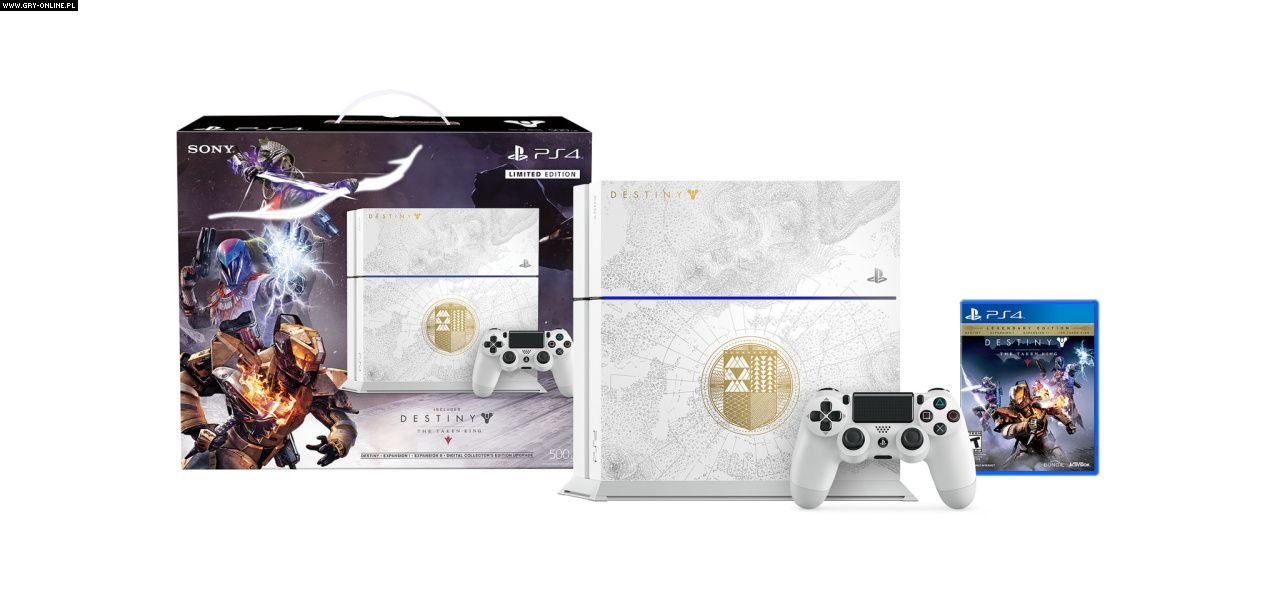 Firma Sony zapowiedziała limitowane wydanie PlayStation 4 w zestawie z Destiny: The Taken King. Ma ono zawierać konsolę z dyskiem 500 GB oraz fizyczną kopię gry (podstawowej wersji i wszystkich dodatków oraz cyfrowe uaktualnienie do edycji kolekcjonerskiej). Paczka będzie dostępna w Europie od 15 września 2015 w cenie 399,99 funtów (ok. 2460 zł).