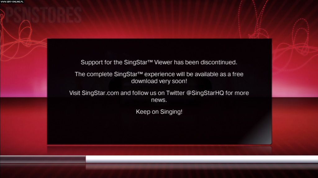 Serwis PSNStores opublikował zdjęcie sugerujące, że w najbliższym czasie seria gier muzycznych SingStar dołączy do katalogu produkcji typu free to play (pomijając konieczność zakupu mikrofonów). Przy próbie wejścia do usługi SingStar Viewer (dostępnej dla posiadaczy dowolnego SingStara w wersji na PlayStation 3) pojawia się bowiem wiadomość, że zaprzestano jej działania. Bardziej konkretne jest kolejne zdanie informujące o tym, że „kompletne doświadczenie z SingStarem już wkrótce będzie dostępne do pobrania za darmo”. Oznacza to najprawdopodobniej, że niedługo samą grę ściągniemy bez uiszczania jakichkolwiek opłat, a przyjdzie nam płacić jedynie za pojedyncze piosenki, co dotychczas było możliwe tylko po zakupie dowolnej odsłony na PlayStation 3.