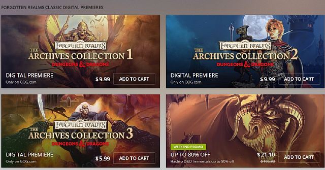 Na największej rodzimej platformie dystrybucji cyfrowej uzupełniono kolekcję klasyków w realiach Forgotten Realms, wypuszczając kolejnych trzynaście RPG-ów na licencji Dungeons & Dragons. Zostały one podzielone na trzy pakiety: