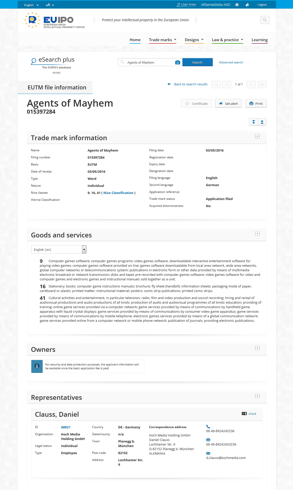 Internauci zauważyli, że w Urzędzie Unii Europejskiej ds. Własności Intelektualnej (EUIPO) firma Koch Media zarejestrowała znak handlowy Agent of Mayhem (dzięki, All Games Delta). Nie zdradzono żadnych szczegółów na jego temat – nie licząc faktu, że ma on związek, rzecz oczywista, z grami wideo – ale zachodzi podejrzenie, że może chodzić o nową produkcję studia Volition, i to powiązaną z serią Saints Row. Wyrażeniem „agent demolki” posłużył się kiedyś Scott Phillips, deweloper ze wspomnianego zespołu, rozmawiając z serwisem Polygon o Saints Row IV.