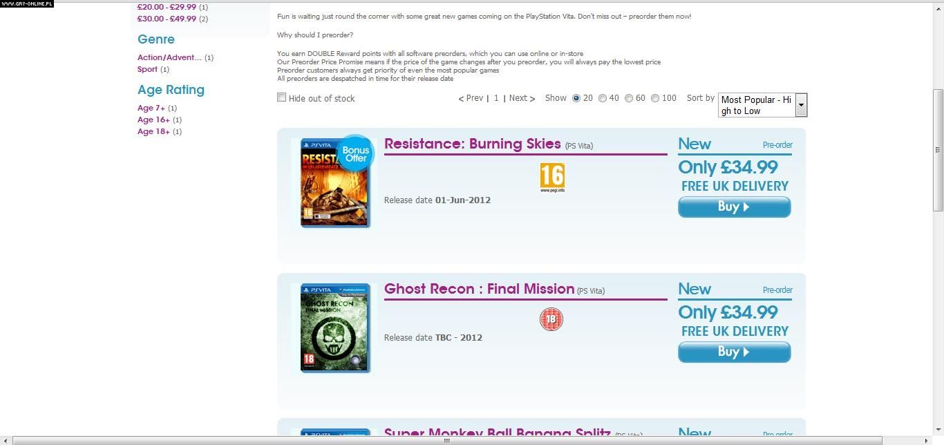 Użytkownik forum NeoGAF o pseudonimie Kafel opublikował zrzuty ekranowe ofert sklepów internetowych Zavvi oraz Game UK. Można na nich zobaczyć gry Assassin’s Creed III oraz Ghost Recon: Final Mission w wersji na PlayStation Vita, które tej pory nie zostały oficjalnie potwierdzone. Oba wpisy zostały szybko usunięte. Firma Ubisoft już wcześniej zapowiadała debiut serii Assassin’s Creed na PlayStation Vita, ale nie wiadomo było, czy chodzi o trzecią odsłonę. Z kolei doniesienia na temat Ghost Recon: Final Mission pojawiają się po raz pierwszy. Być może więcej dowiemy się na czerwcowych targach E3.