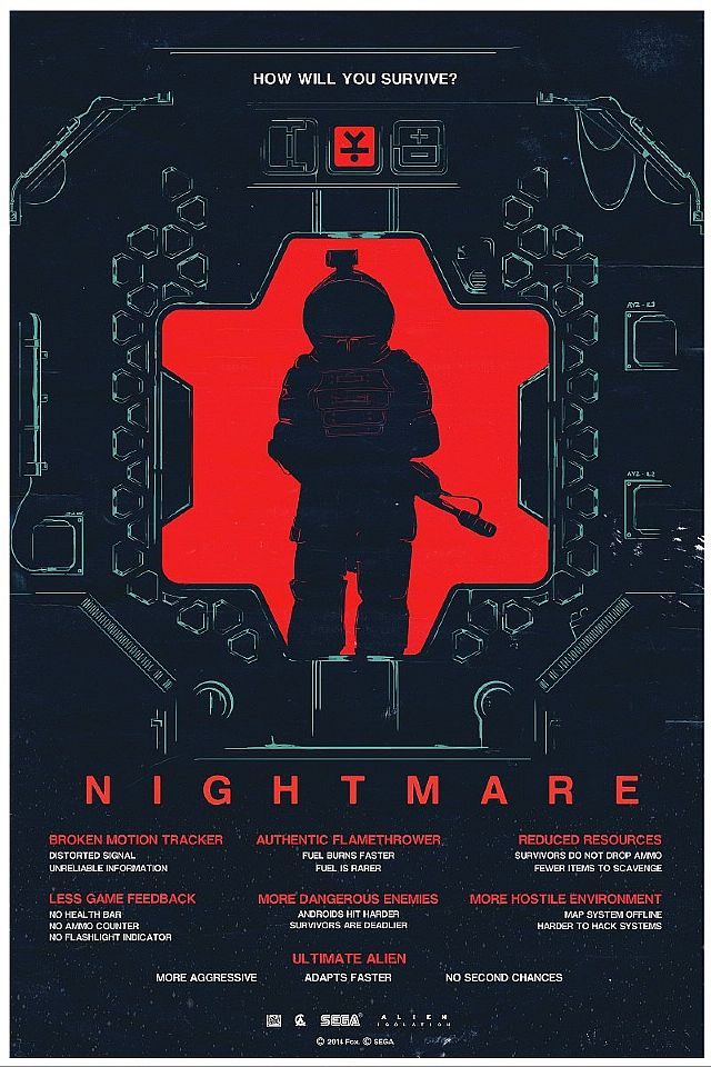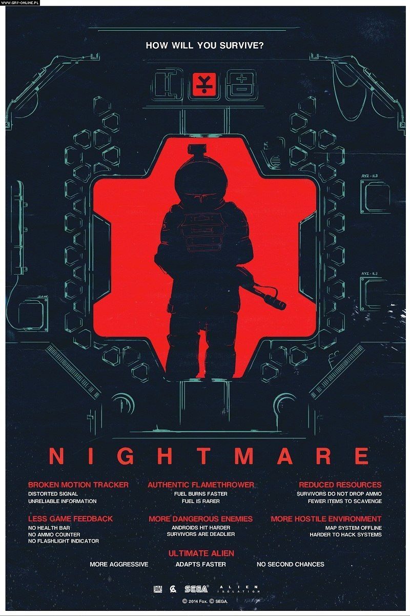 Wraz z najświeższą aktualizacją survival horror Obcy: Izolacja otrzymał dwa nowe poziomy trudności: Koszmar i Nowicjusz. Podczas gdy ten drugi rozpieszcza grającego większą iloscią zasobów, łatwiejszą walką oraz mniej agresywnym obcym, tryb Koszmar sprawi, że każda minuta na stacji Sevastopol zmieni się w nieustanną walkę o przetrwanie. Osoby podejmujące to wyzwanie muszą liczyć się z mniejszą liczbą przydatnych przedmiotów, groźniejszymi przeciwnikami i jeszcze inteligeniejszym ksenomorfem, błyskawicznie adaptującym swoje zachowanie do taktyki gracza. Ponadto znika pomocny HUD oraz możliwość pobierania map, a czujnik ruchu jest uszkodzony, przez co bywa zawodny.