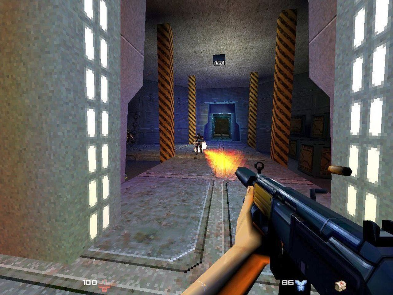 Ciekawie też z perspektywy czasu patrzy się na grafikę. Z jednej strony, ze względu na poziom wielokątów, odpadła z wyścigu zbrojeń rozkręconego przez ID Software i Epic Games. Z drugiej – kilka efektów wypadało tu całkiem ciekawie i przekonująco – odblaski i refleksy robiły wrażenie, podobnie jak oświetlenie (wybaczcie rym), a pęknięcia szkła wypadały naprawdę nieźle, choć, poprawcie mnie, nie przypominam sobie, by służyły czemuś konkretnemu.
