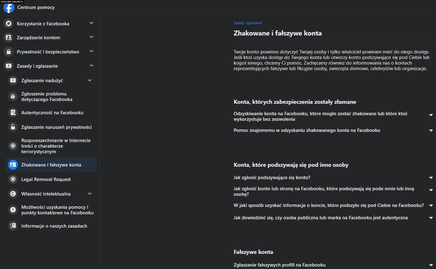 Facebook oddaje nam do dyspozycji rozbudowane centrum pomocy, w którym znajdziemy nie tylko przydatne informacje na temat korzystania z tego serwisu, lecz również porady dotyczące postępowania w przypadku kradzieży kont należących do nas lub do naszych znajomych. Aby z niego skorzystać: