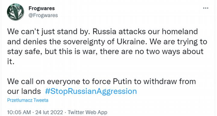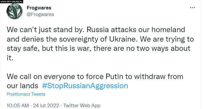 Branża gier wideo również nie pozostaje obojętna na wojnę. Od rana w sieci można znaleźć wypowiedzi i komentarze deweloperów oraz ludzi związanych ze środowiskiem gamedevu czy sportów elektronicznych.
