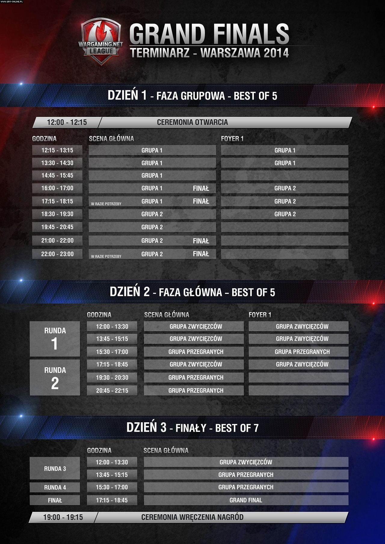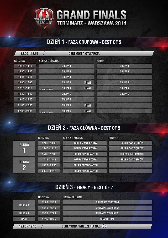 „W przeciwieństwie do poprzednich zawodów, w których nagrody przydzielaliśmy w oparciu o ostateczną lokatę drużyny, nagrody za Grand Finals zależeć będą zarówno od osiągniętego miejsca, jak również od wyników poszczególnych bitew rozegranych podczas całego turnieju. Im mniej przegranych lub remisów, tym większa nagroda!”