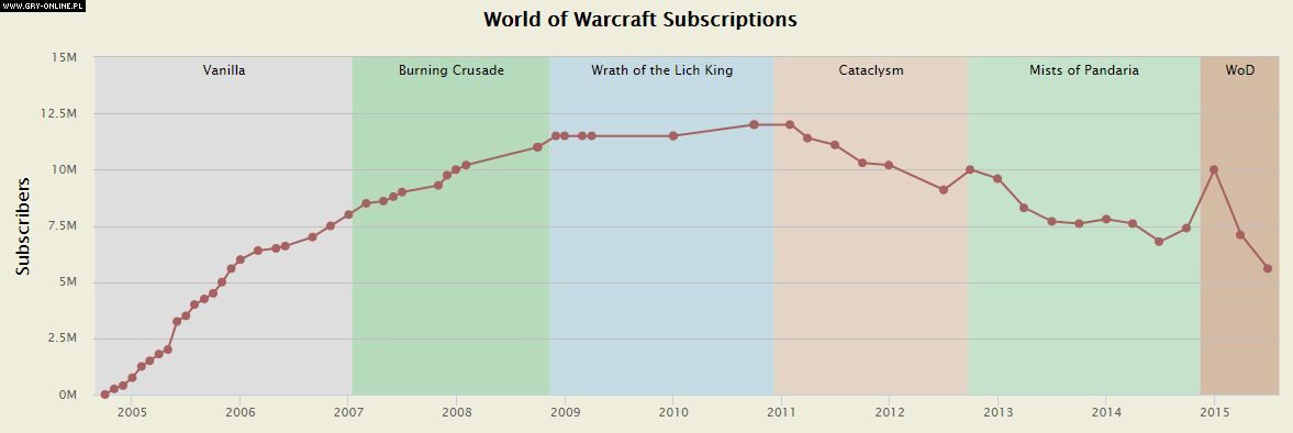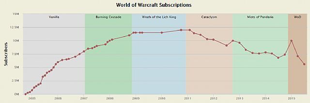 Firma Blizzard Entertainment zdradziła za pośrednictwem ostatniego sprawozdania finansowego holdingu Activision Blizzard, że liczba subskrybentów gry World of Warcraft pod koniec drugiego kwartału bieżącego roku wyniosła 5,6 milionów osób. Jest to wynik o 1,5 miliona gorszy w stosunku do marca 2015 roku.