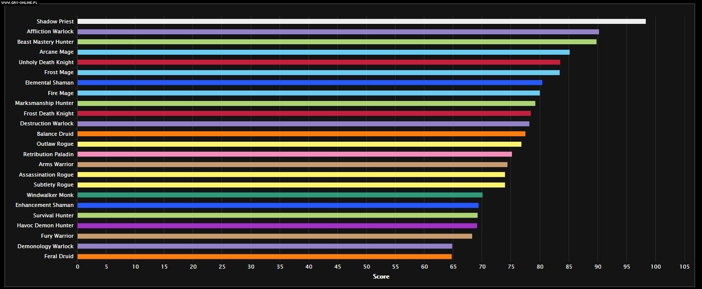 Tego typu zestawienia mogą pomóc w wyborze najbardziej optymalnej klasy do rajdów, ale w tym przypadku radzimy podchodzić do tych „tierlist” z rezerwą. Ostatni patch może przygotowywać WoW-a na debiut Shadowlands, ale nie wprowadził wielu nowości związanych z dodatkiem. Brakuje choćby systemu przymierzy (Covenants), nagradzających graczy unikatowymi zdolnościami oraz przedmiotami, które na pewno zmienią metagrę. Co więcej, w lokacjach dodanych w rozszerzeniu nie będzie można korzystać z przedmiotów z azerytu, surowca z dodatku Battle for Azeroth. Dla niektórych klas będzie to spory cios – moc Shadow Priesta w dużej mierze opiera się na tego typu wyposażeniu. Możemy się więc spodziewać sporych przetasowań. World of Warcraft: Shadowlands zadebiutuje jeszcze w tym roku, aczkolwiek nie znamy dokładnej daty premiery.