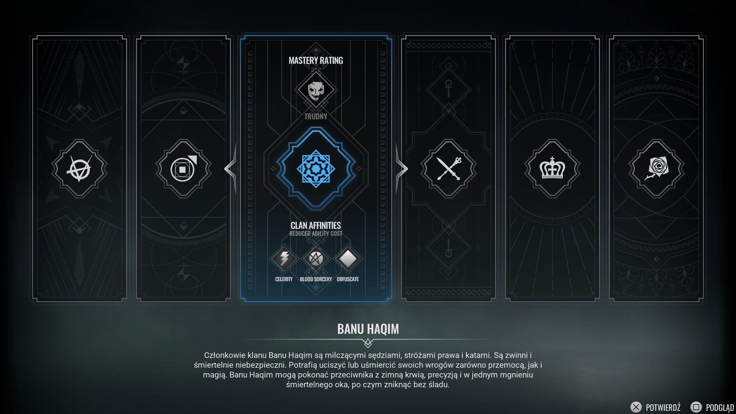 Po opuszczeniu budynku, w którym miał miejsce prolog, będący również swego rodzaju samouczkiem zasad walki i sposobu poruszania się, udałem się do mieszkania wskazanego przez Fabiena. Tam też po krótkim odpoczynku i spokojnej rozmowie mogłem zadeklarować, do którego klanu będzie należeć moja postać. Wybór ten zdecydowanie ma znaczenie – tak w rozgrywce, jak i w fabule. Podstawowa wersja gry oferuje cztery klany: Brujah, Tremere, Banu Haqim i Ventrue. Na początku zdecydowałem się na klan Brujah, ponieważ szukałem czegoś nastawionego na brutalną walkę. W ramach dodatku Shadows and Silk lub droższych edycji gry możemy również wypróbować klany Lasombra i Toreador. Decyzja o zablokowaniu dwóch frakcji za paywallem na pewno spotka się z krytyką graczy.