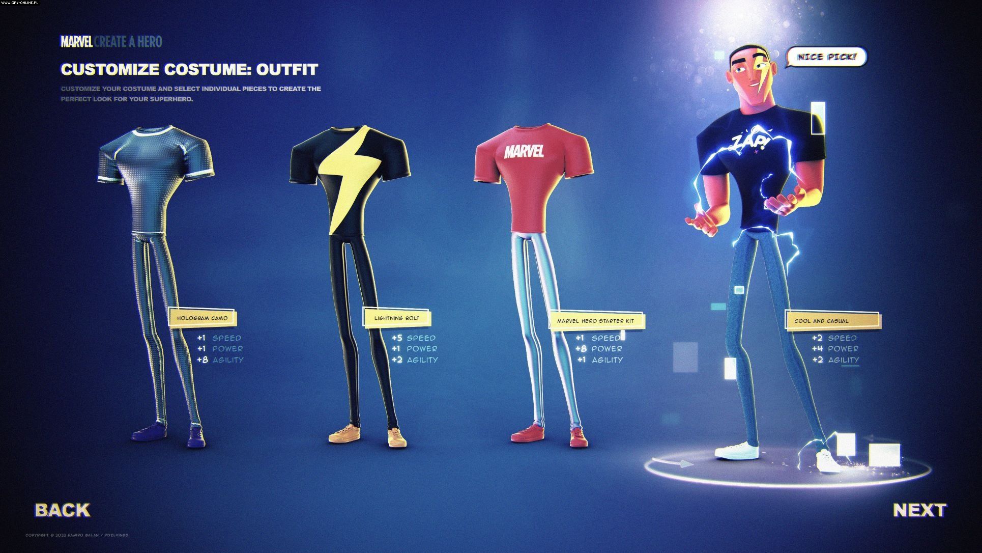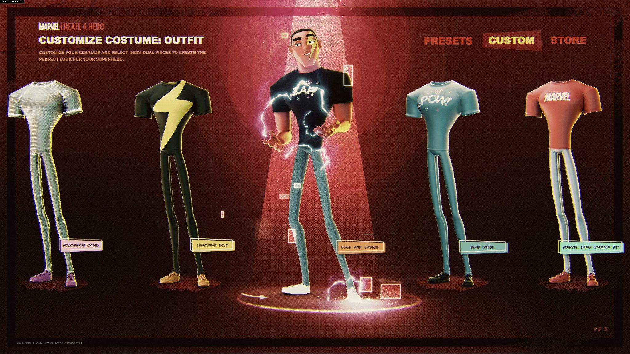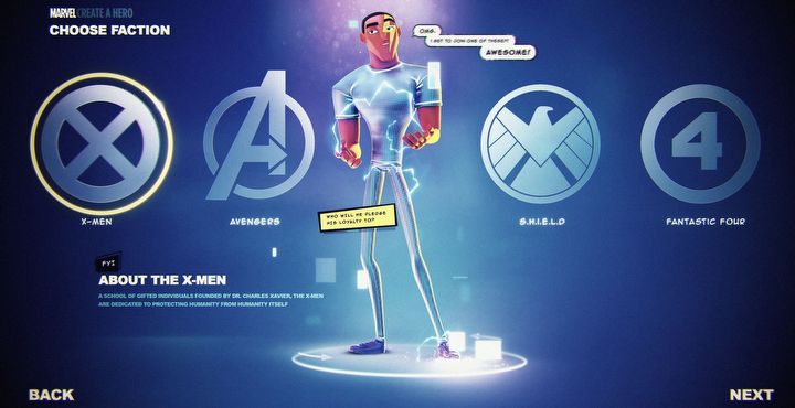 Można przypuszczać, że projekt był już na dosyć zaawansowanym etapie produkcji. Potwierdzają to screenshoty opublikowane przez Ramiro Galana. Przedstawiają one edytor postaci. Jak widać na załączonych poniżej materiałach, w Marvel MMO mielibyśmy do dyspozycji cztery frakcje, do których moglibyśmy przypisać swojego bohatera. Na liście znajdowali się X-Meni, Fantastyczna Czwórka, Avengersi oraz SHIELD. Na starcie wybieralibyśmy również płeć, posturę, ubiór i supermoce herosa. Jeśli zaś chodzi o przedstawienie postaci, to trudno oprzeć się wrażeniu, że stylistyka gry opierana była na filmie animowanym – Spider-Man: Uniwersum.