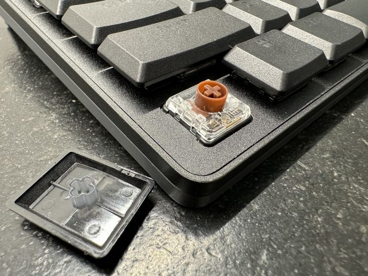 Brązowe przełączniki mechaniczne dają spory komfort pisania, ale sprawdzą się też w grach.Źródło: fotografia własna.