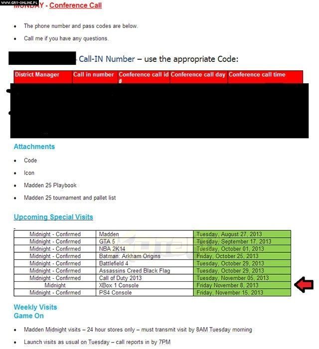 Najnowsza konsola firmy Microsoft wciąż pozostaje bez oficjalnej daty premiery. Dokument, który wyciekł z jednej z amerykańskich sieci sklepów sugeruje jednak, że Xbox One pojawi się na rynku 8 listopada 2013 roku.