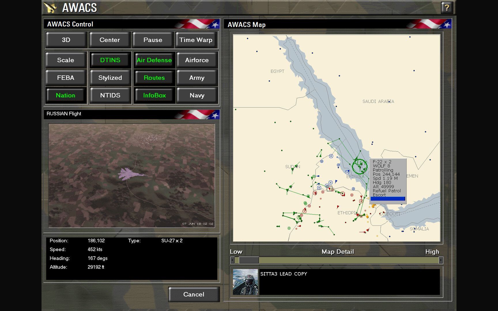 Wyjątkowym elementem rozgrywki pozostaje rola dowódcy AWACS. Gracz nie tylko pilotuje myśliwiec F-22, ale może w dowolnym momencie przejąć kontrolę nad całą strefą walki, obserwować każdy samolot w teatrze działań i wydawać rozkaz przechwycenia podległym maszynom.