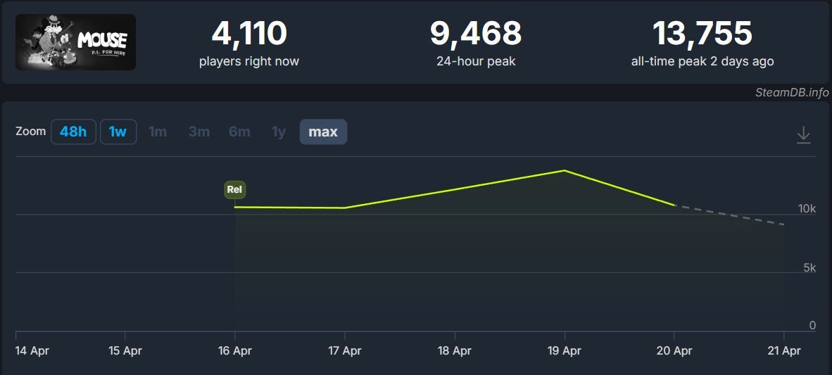 Również statystyki aktywności prezentują się przyzwoicie – na platformie Valve w szczytowym momencie w grze bawiło się ponad 13 tysięcy osób jednocześnie.