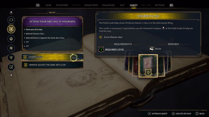 Nie musicie bardzo długo czekać na odblokowanie magicznego kompasu. Otrzymacie go automatycznie pod koniec drugiego głównego zadania Witaj w Hogwarcie, w którym pod okiem profesor Weasley zapoznacie się wstępnie z zamkiem oraz dormitorium Waszego Domu. Gra wyświetli na ekranie potwierdzenie o tym, że kompas jest już dostępny.