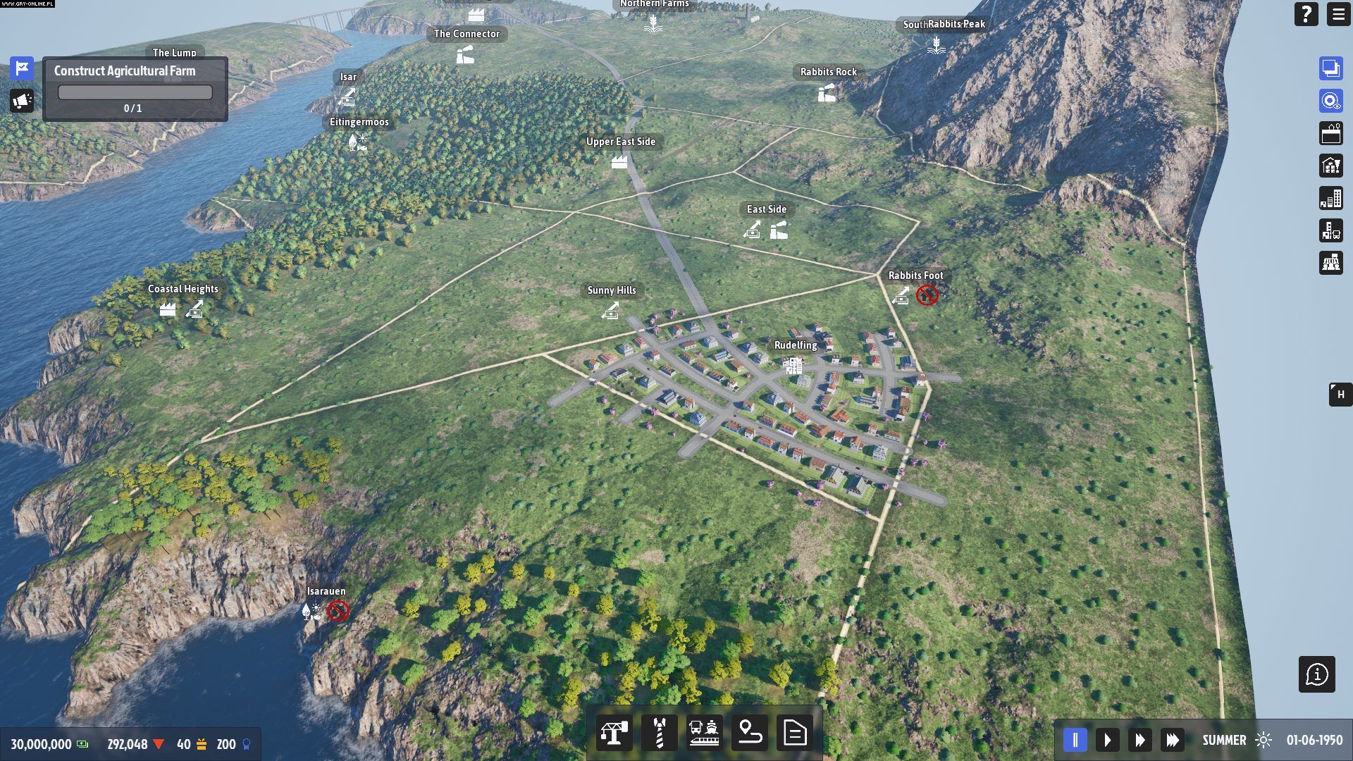 Cały obszar podzielono na mniejsze części, z czego każdy z owych regionów ma własną charakterystykę – niektóre będą mieć żyzną glebę, inne gęste lasy, a jeszcze gdzie indziej znajdziemy cenne złoża pod ziemią. Potrzebne zasoby są dość rozstrzelone po całej mapie, co wymusza przemyślane budowanie fabryk i sklepów oraz organizację transportu. Narzędzia lepiej produkować bliżej tartaku czy bliżej miasta, gdzie będą sprzedawane? Z reguły opłaca się na miejscu jak najbardziej przetworzyć dane dobra, jednak czasem może się okazać, że strategicznie poprowadzona linia kolejowa i przeniesienie fabryki bliżej miasta niesamowicie odciąży całą logistykę.