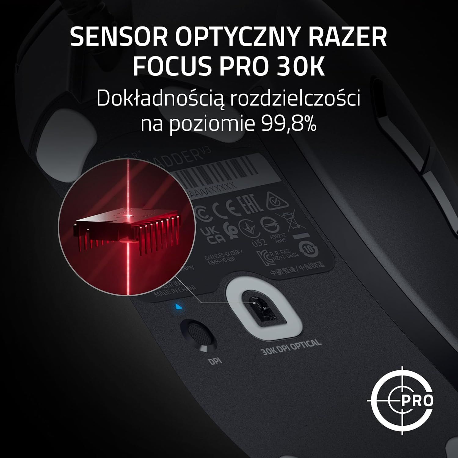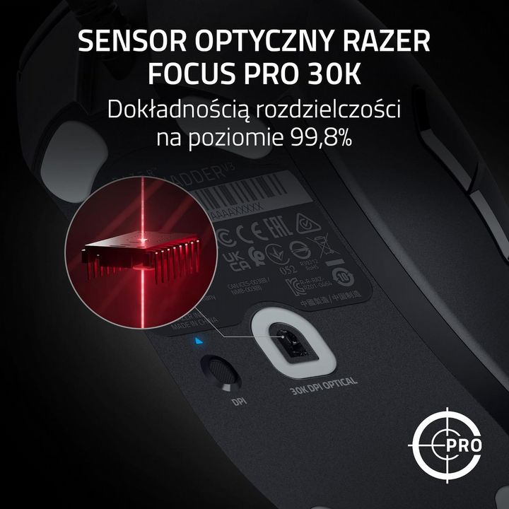 Później zaczęły mnie kusić parametry myszki, które do tej pory widywałem tylko w recenzjach sprzętu dla półprofesjonalnych graczy. Czujnik Focus Pro 30K, ultraszybkie przełączniki, niemal zerowe opóźnienia. To wszystko brzmiało jak lista życzeń gracza, tylko że tym razem było prawdziwe. Przy mojej starej myszce miałem wrażenie, że czasem muszę przewidywać jej reakcje; z DeathAdderem V3 to myszka przewiduje mnie.