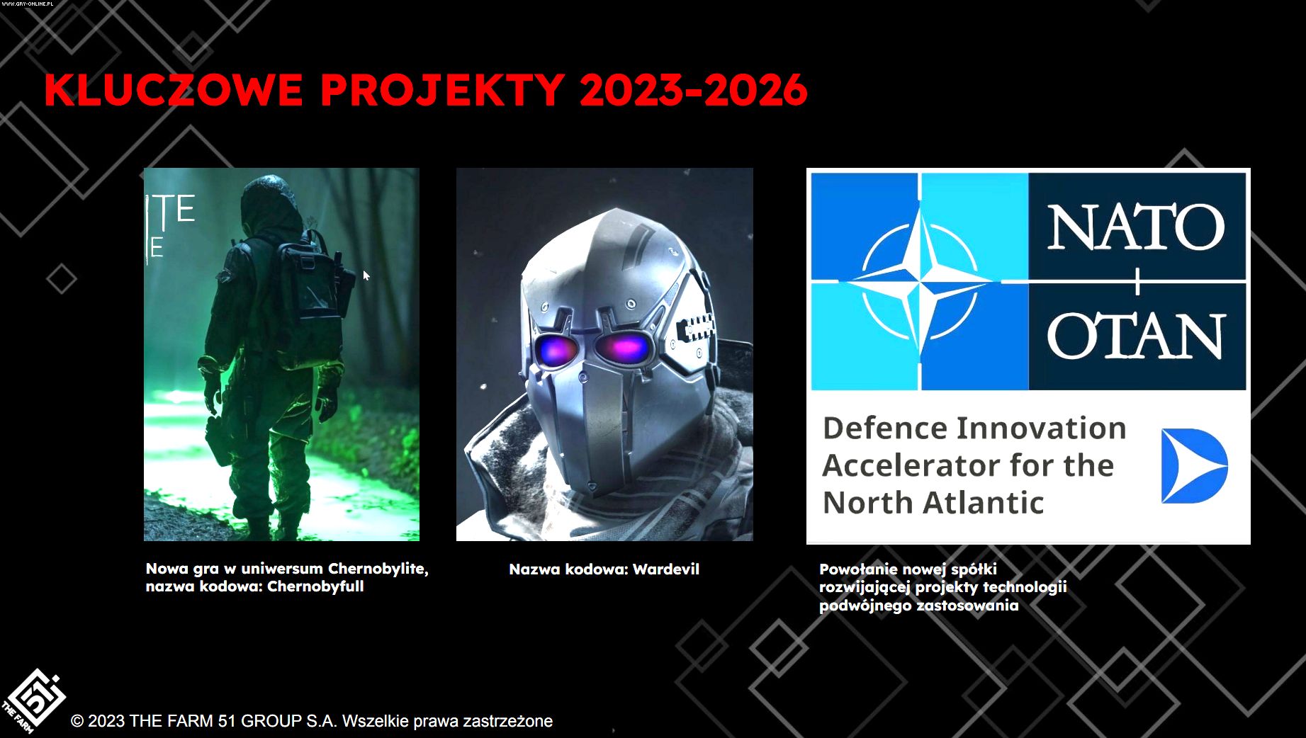 Polskie niezależne studio The Farm 51 ujawniło swoją strategię na lata 2023–2026. W ramach prezentacji podsumowane zostały osiągnięcia ostatnio wydanych przez firmę gier, czyli survival horroru Chernobylite oraz darmowego World War 3. Oprócz tego poznaliśmy wiele szczegółów na temat nadchodzących produkcji.