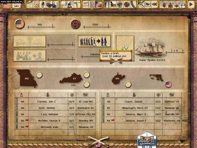 Firma Matrix Games zapowiedziała oficjalnie kolejną produkcję opartą na Amerykańskiej Wojnie Secesyjnej. W pozycji o tytule Gary Grigsby’s War Between the States, będącej strategiczną grą wojenną autorstwa studia 2BY3 Games oraz Gary’ego Grigsby’ego (legendy wśród fanów tego typu produkcji), przejmiemy kontrolę nad jedną ze stron konfliktu i postaramy się odtworzyć bieg historii.