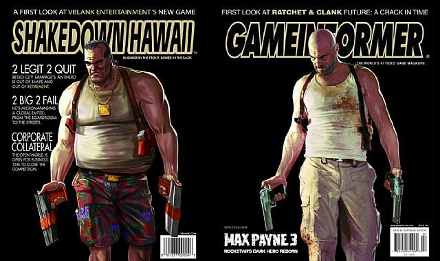 Wszystko to ukazane zostanie w pełnej dużych pikseli oldskulowej stylistyce. Retro City Rampage wzorowane było na produkcjach z 8-bitowych komputerów i konsol. Natomiast grafika Shakedown Hawaii przypominać ma tytuły 16-bitowe. Warto wspomnieć, że fabuła kampanii utrzymana będzie w lekko absurdalnym klimacie i scenariusz ma wyśmiewać najbardziej oklepane schematy współczesnych gier. Widać to zresztą już w pierwszym plakacie, w oczywisty sposób odnoszącym się do słynnej okładki magazynu Game Informer, w którym ujawniono istnienie projektu Max Payne 3.