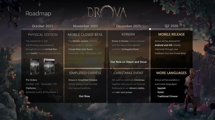 Zacznijmy od świetnej wieści dla naszych rodzimych graczy. Otóż powstaje polska wersja językowa Drovy (obok koreańskiej, hiszpańskiej i dwóch chińskich). Według planu deweloperów zostanie ona udostępniona w pierwszym kwartale 2026 r.