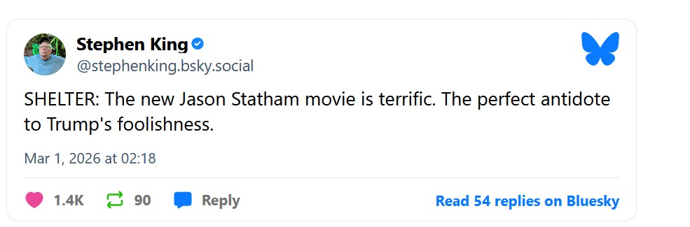 Jak zauważa FilmStarts, Stephen King uznał Shelter – bo tak brzmi oryginalny tytuł filmu – za znakomity. Fani Jasona Stathama z pewnością nie potrzebują niczyjej rekomendacji, by udać się na nowe widowisko z tym gwiazdorem w obsadzie, ale polecenie przez mistrza horroru może skłonić do seansu widzów nieszczególnie gustujących w produkcjach z tym aktorem.