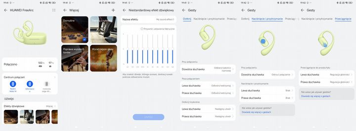 Słuchawki bez ANC z reguły nie mają zbyt wielu opcji do wyboru w aplikacji, odpada w końcu zarówno samo tłumienie hałasów, jak i różnego rodzaju ustawienia przepuszczania dźwięków. Do dyspozycji mamy 4 predefiniowane profile dźwięku, możliwość tworzenia własnych, a także rozbudowane menu z gestami.
