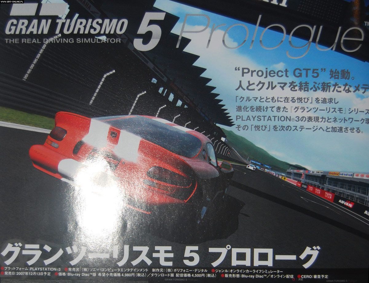 Przypomnijmy, iż Gran Turismo 5: Prologue jest rozbudowanym demem GT5. Pełna wersja ukaże się w 2008 roku (jeszcze nie sprecyzowano w którym miesiącu). Co ciekawe, 20 października w Kraju Kwitnącej Wiśni na PlayStation Store ma pojawić się grywalna wersja Prologue. Tym samym dojdzie do niecodziennej sytuacji, w której gracze będą mogli ściągnąć i przetestować darmowe, małe demo większego, płatnego, rozbudowanego dema.