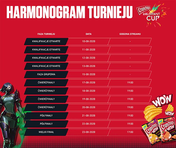 Przy okazji przypominamy Wam, że oficjalne transmisje z VALORANT CRUNCHIPS CUP rozpoczniemy wraz ze startem etapu ćwierćfinałowego (tj. od 17 sierpnia). Streamy będziecie mogli oglądać na naszym kanale na platformie Twitch. Zmagania skomentują dla Was: Paweł „Cruiser” Klimesz, Karol „Kasar” Suchecki, Dawid „Diables” Porwisiak, Wojciech „Bezi” Wróbel oraz Andrzej „Śledziu” Śledź.