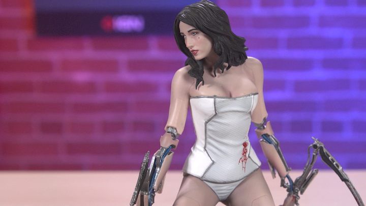 Dziennikarze biorący udział w zamkniętych prezentacjach Cyberpunka 2077 w czasie tegorocznych targów E3 otrzymali od studia CD Projekt RED specjalny podarunek – figurkę przedstawiającą kobietę z pamiętnego, pierwszego teasera omawianego tytułu (tę, w której przedramionach znajdują się śmiercionośne ostrza – tzw. Mantis Blades). Redaktorzy serwisu IGN przygotowali krótki filmik, na którym możemy dokładnie obejrzeć wspomniany gadżet.