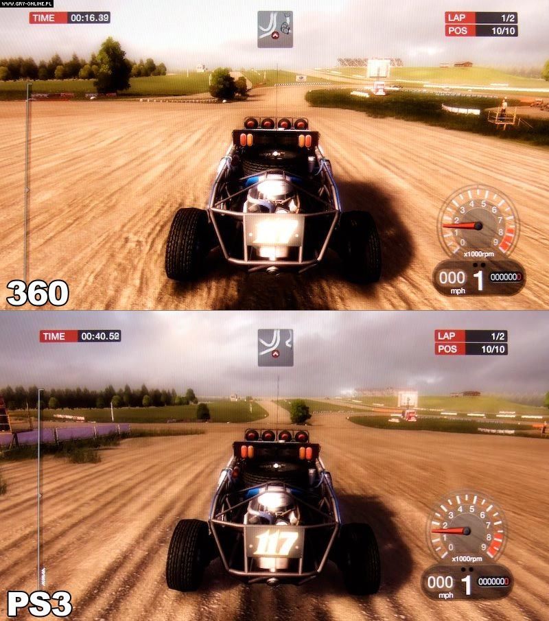 Obrazki dowodzą, że Colin McRae: DiRT na Xboksie 360 prezentuje się znacznie lepiej niż na konkurencyjnym urządzeniu. Można zaryzykować zatem stwierdzenie, że firma Codemasters Studios potraktowała konwersję po macoszemu. Trudno bowiem uwierzyć, aby moc obliczeniowa konsoli PlayStation 3 nie pozwalała uwzględnić np. takiej samej ilości drzew, co w wydanym w czerwcu pierwowzorze.