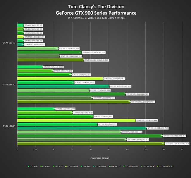 Choć rzeczony materiał został przygotowany z myślą o układach grafiki GeForce, to posiadacze Radeonów również mogą skorzystać z przynajmniej części zawartych w nim wskazówek. Warto również wspomnieć, że karty grafiki produkcji AMD radzą sobie bardzo dobrze w najnowszym dziele Ubisoftu, co widoczne jest teście wydajności przeprowadzonym przez niemiecki serwis pcgameshardware.de. Oto jak wypadają układy GeForce z serii GTX 900 przy maksymalnych ustawieniach graficznych: