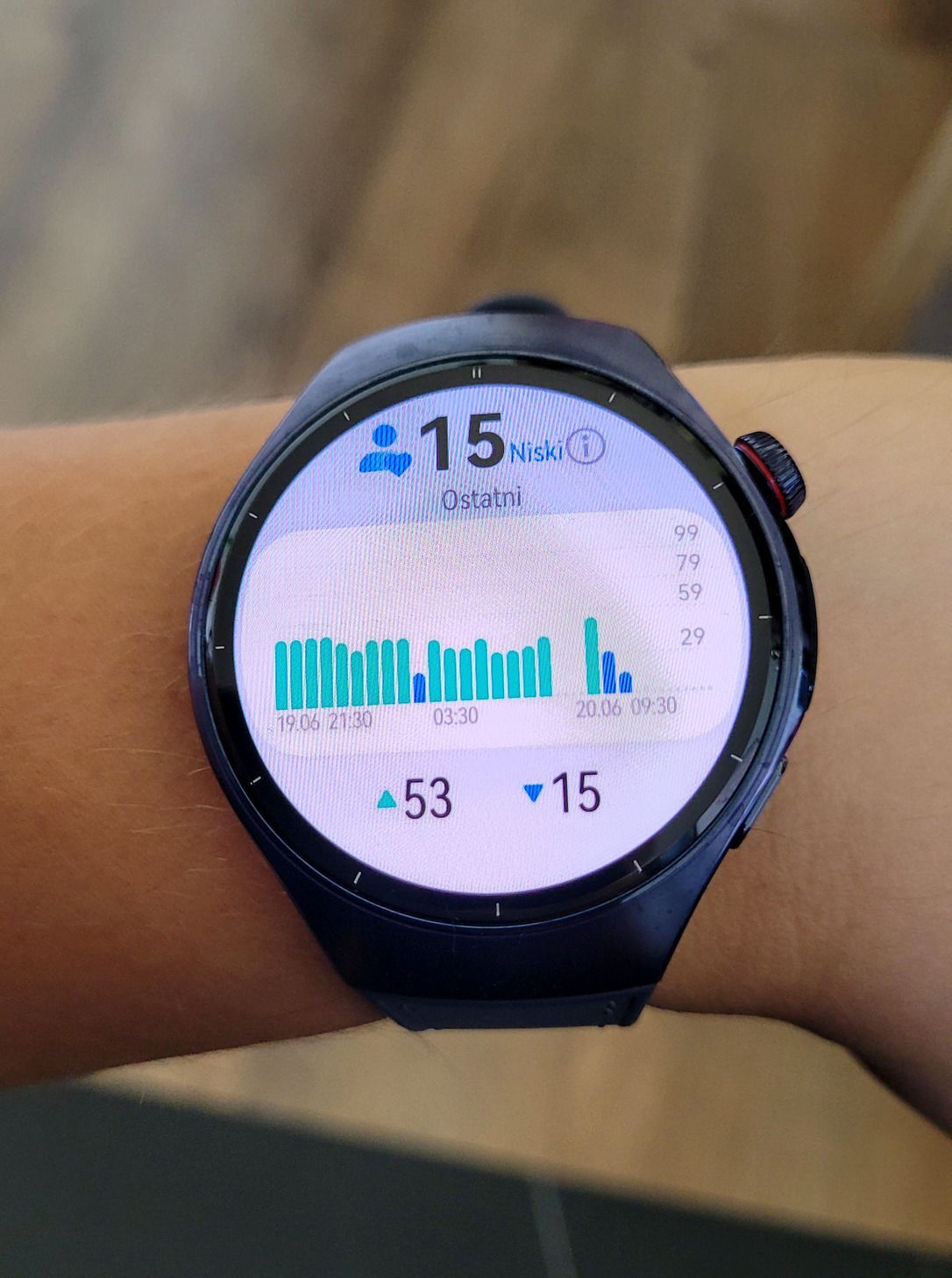 Warto wspomnieć, że zegarek rozpoznaje fazy snu: lekkiego, głębokiego i REM. Zawsze myślałem, że mam dobry sen, jednak HUAWEI WATCH 5 wyprowadził mnie skutecznie z tego błędu. Niespodziewanie użyteczna okazała się jednak inna funkcja zegarka – monitoring stresu.