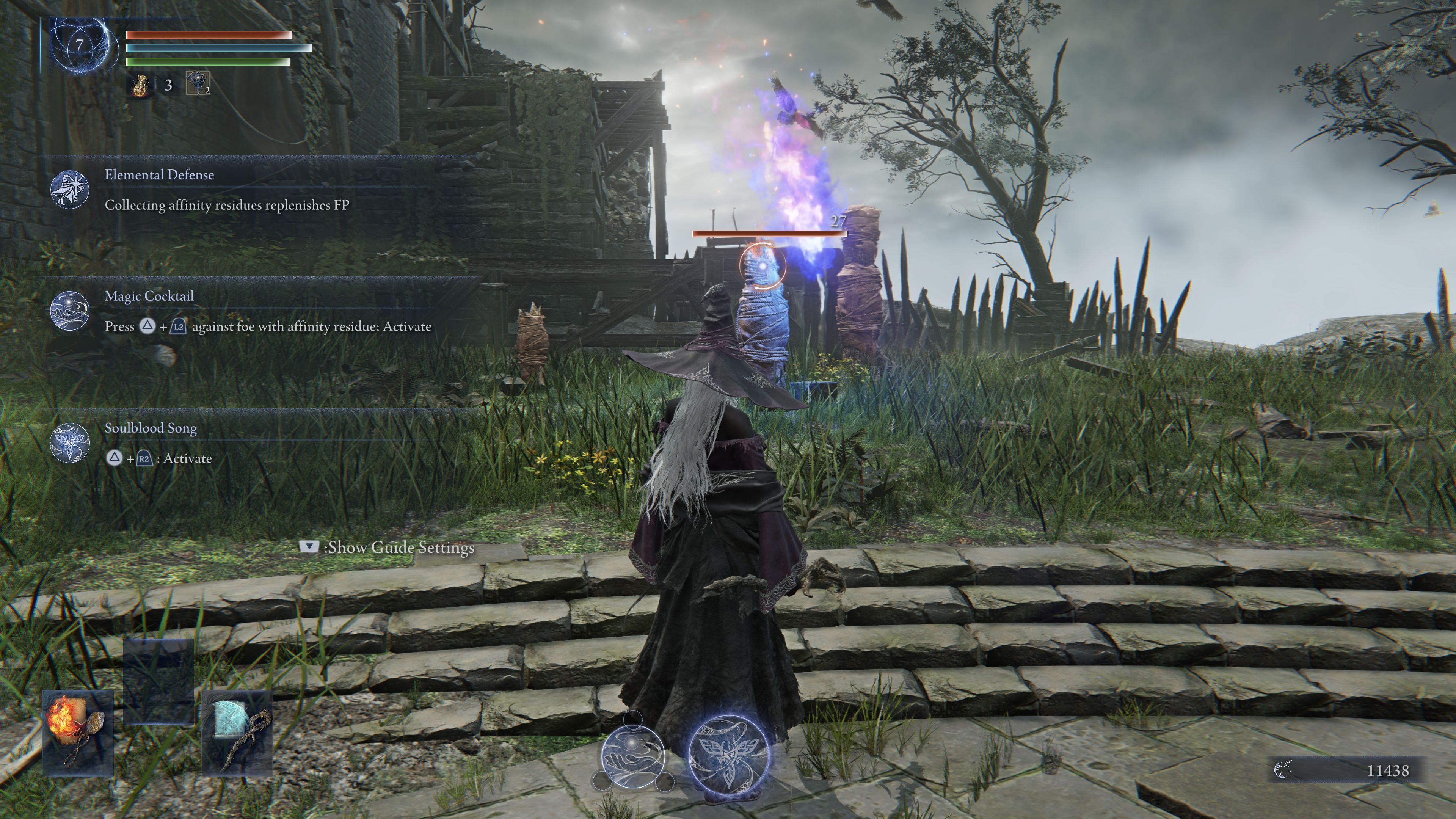 Następnie możecie wchłonąć tę właściwość, aby napełnić 1 z 3 slotów Magicznego Koktajlu. I tutaj zaczyna się prawdziwa zabawa, bo kombinacji jest mnóstwo. Jeśli nie chcecie zapamiętywać co robi każde z zaklęć, to powinniście ogólnie wiedzieć, że czary ofensywne działają zazwyczaj na krótkim oraz średnim dystansie, dlatego też nie warto z nich korzystać, będąc daleko, bo po prostu nie traficie wrogów.