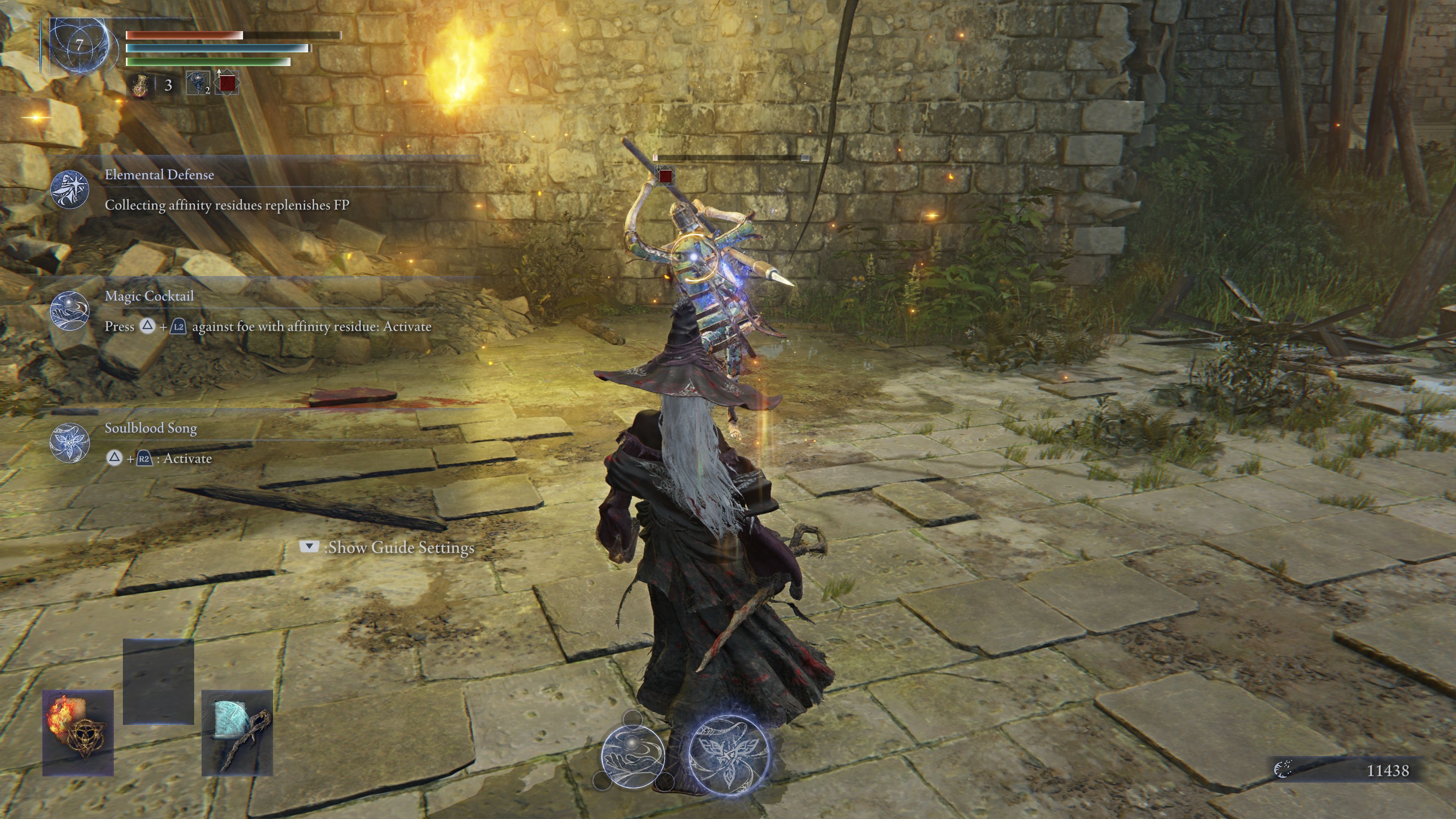 Początkowo raczej nie będziecie w stanie nakładać innych efektów niż magiczne, chyba, że ktoś z zespołu w tym pomoże. Dlatego pamiętajcie, żeby po każdym ataku wchłaniać właściwość, aby nigdy nie wyczerpać całkowicie many.