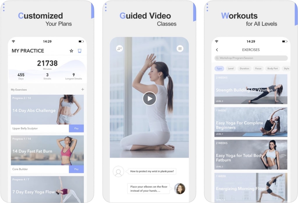 Oferuje ona nie tylko ćwiczenia, ale zawiera również relaksacyjną muzykę i specjalne zajęcia z medytacji. Ciekawym dodatkiem są wyzwania, które motywują do regularnych ćwiczeń. Dobrą rekomendacją może być odznaczenie przez The Wall Street Journal jedną z 5 najbardziej uzależniających aplikacji do ćwiczeń. Dostęp do pełnej bazy treningów jest płatny, lecz aplikacja posiada dopracowane darmowe programy. Niestety język polski nie jest wspierany na żadnym systemie.