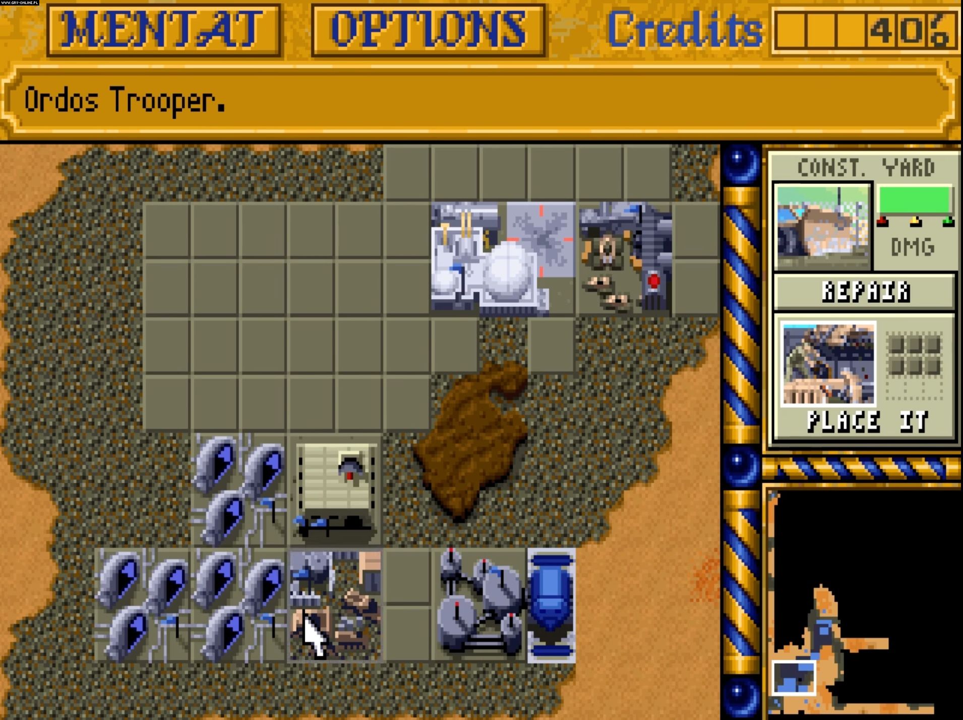 Z komputerową Diuną wiąże się ciekawa i dość skomplikowana historia, bo w 1992 roku wydawca Virgin Games zaserwował aż dwie gry o tytule Dune. Pierwsza z nich jest strategiczną przygodówką studia Cryo Interactive, inspirowaną także filmem Davida Lyncha. Zaczęła powstawać wcześniej, ale decydenci z Virgin nie byli przekonani do „francuskiej stylistyki” oraz połączenia przygodówki ze strategią. Zagrozili skasowaniem projektu i dobili targu ze studiem Westwood, widząc istotę gry osadzonej w uniwersum Diuny w samych bitwach o przyprawę. Rozgrywką miała przypominać RTS-a z 1989 roku zatytułowanego Herzog Zwei. Cryo kontynuowało jednak prace nad swoim dziełem i w wyniku różnych przetasowań zdołało wydać je jako pierwsze – stąd szybka decyzja o zmianie tytułu RTS-a na Dune II. Okazało się, że w tamtym okresie obie produkcje odniosły duży sukces, choć niewątpliwie większy wpływ na całą branżę miała „dwójka”.