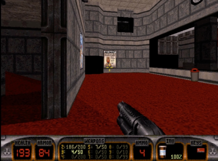 Quake był straszny, klimatyczny, zachwycał grafiką, ale muszę powiedzieć, że dopiero po latach z Wikipedii dowiedziałem się, kim był główny bohater, i poznałem fabułę tej gry. To była pozycja, w której główną rolę odgrywała Twoja spluwa. I tyle – wtedy to wystarczyło. Duke Nukem 3D okazał się jego kompletnym przeciwieństwem. Nie dorównywał Quake’owi grafiką, ale według wielu przewyższał go „miodnością”. Protagonista miał w sobie tyle charyzmy, że ta aż wylewała się z ekranu. Wystarczył rzut oka na monitor, by wiedzieć, że walczymy z kosmitami na Ziemi, a potem i w innych lokacjach.