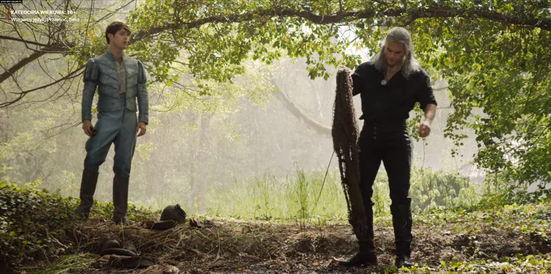 Renfri, która w pierwszym odcinku spotyka wiedźmina w lesie aż dwa razy, to tylko jeden z przykładów. Jak zresztą ta księżniczka-rozbójniczka zakradła się tak, że Geralt jej nie usłyszał, pozostanie chyba tajemnicą (mniejszą, jeśli zrozumiemy, że był to niezbyt udany pretekst do „dialogu” łowcy potworów z Płotką). Ale spotkanie Jaskra w piątym odcinku (tym z dżinem) to już absurd, po którym głośno parsknąłem śmiechem. Przypominam, że Geralt próbuje tam wyłowić magiczny przedmiot z jeziora, gdy nagle podchodzi Jaskier i mówi: „Geralt! Witaj. Ile to już minęło, miesiące, lata?”. Jeśli to miał być żart, to dość naciągany.
