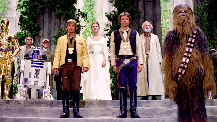 Tekst otwieramy przypadkiem z przymrużeniem oka. W ostatnich minutach czwartej części Gwiezdnych wojen George Lucas zabiera widzów na ceremonię wręczenia oficjalnych odznaczeń zasłużonym dla Rebelii w bitwie o Yavin. Gwoli przypomnienia: celem całej operacji było zniszczenie pierwszej Gwiazdy Śmierci, a w batalii brały udział wyłącznie małe maszyny – myśliwce – których lasery stacji kosmicznej Imperium nie były w stanie dosięgnąć. Ostatecznie, po zaciętej wymianie ognia z wrażymi pilotami, Gwiazdę niszczy Luke Skywalker, wspierany przez Sokoła Millennium z Hanem Solo i Chewbaccą na pokładzie. Cały tercet zostaje bohaterami. I w tym momencie zaczyna się prawdziwa walka – tym razem fanów z twórcami tego kultowego obrazu SF.