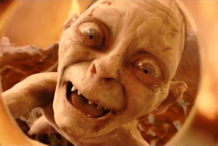 Książkowy Frodo, mimo wszystkiego, co przeżył w Mordorze, nigdy nie posunąłby się do morderstwa. Filmowy był natomiast tego bardzo bliski. Co więcej – nakręcona najpierw scena finałowego rozstrzygnięcia na zboczu Orodruiny pokazywała Froda, który spycha Golluma w przepaść. Jakby tego było mało, wizję tę Jackson uważał za właściwą niemal do zakończenia zdjęć. Dopiero na sam koniec nakręcił tę scenę jeszcze raz, tym razem w zupełnie inny sposób.