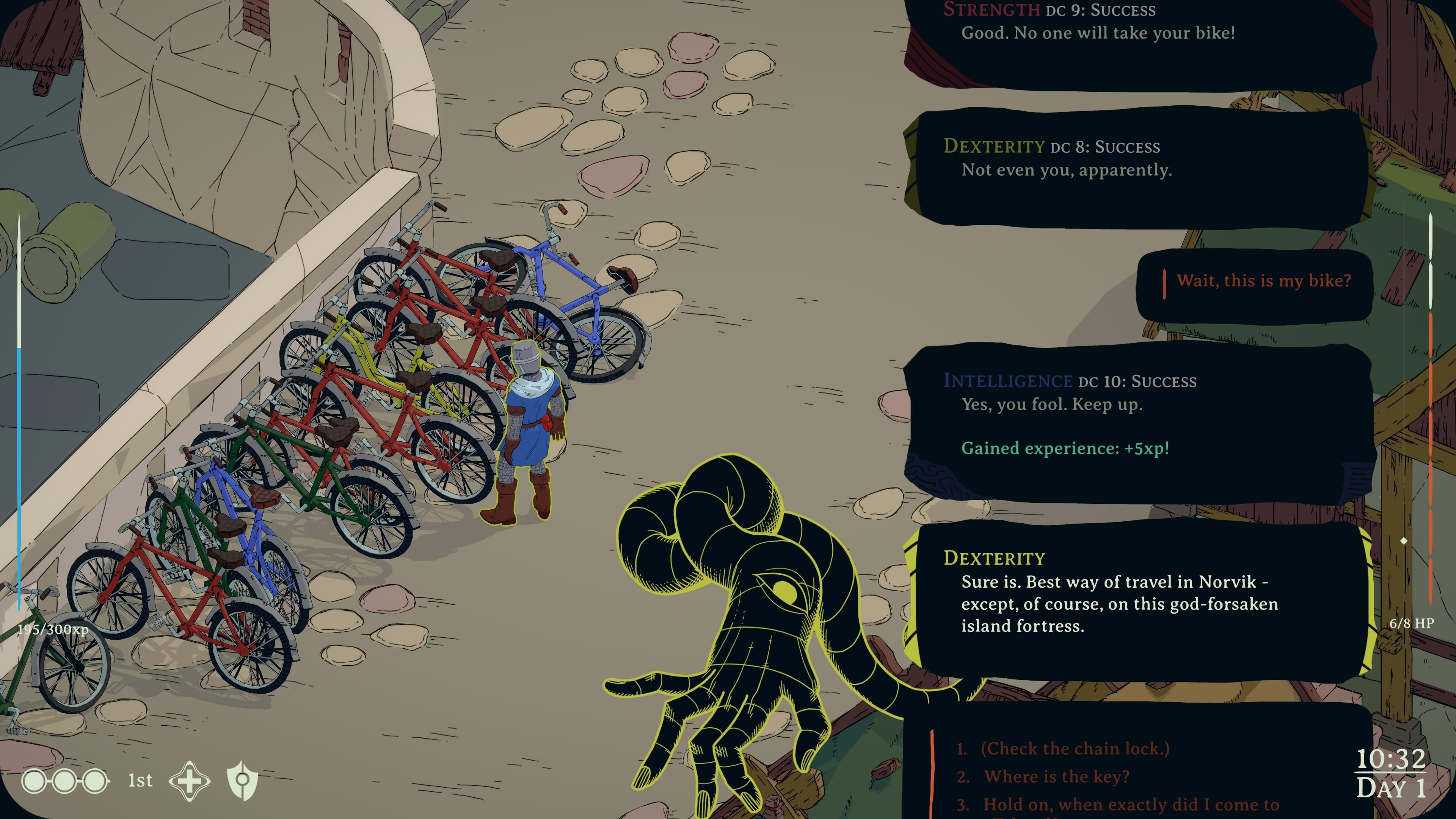 Tu również trafiamy do świata fantasy z nutką anachronizmów, który przepełnia wyborny humor – ale przy tym zachowuje odpowiednią dozę inteligencji, wrażliwości i powagi, a na to wszystko nakłada angażującą narrację i interesujące lore. Absolutnie nie chcę Wam psuć niespodzianek, więc streszczę wszystko do jednego zdania: wcielamy się w Kleryka, który w wielokulturowym – i wielopartyjnym – mieście Norvik prowadzi śledztwo w sprawie eksplozji w herbaciarni, a na przedstawienie wyników dochodzenia ma pięć dni, tj. musi to zrobić przed pierwszymi w historii wyborami. I przygoda zaczyna się od pobudki w kostnicy… Szlag, to dwa zdania. A wspomniałem, że bohater przybył do miasta na rowerze?